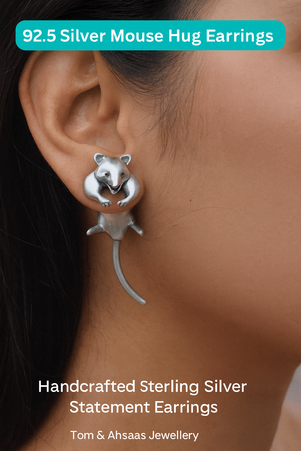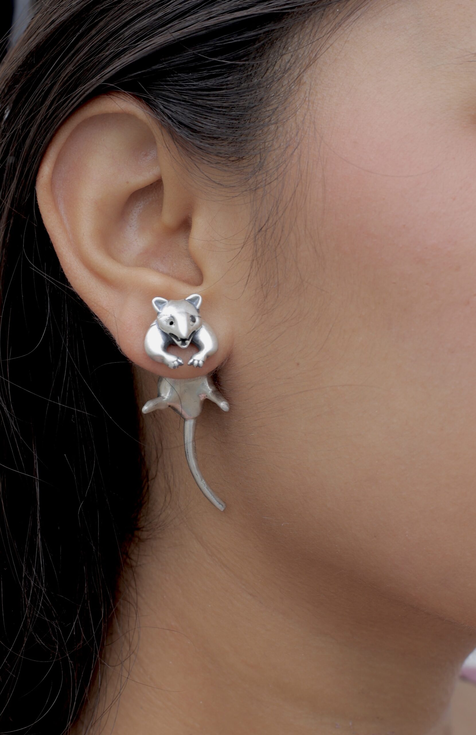 Bring home this adorable and artistic pair of 92.5 sterling silver Mouse Hug Earrings, handcrafted in Jaipur.